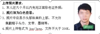 2.上傳照片:照片將用于準(zhǔn)考證以及考試合格證明,請(qǐng)考生上傳照片時(shí)慎重選用。照片不合格的考生審核將不能通過(guò)。