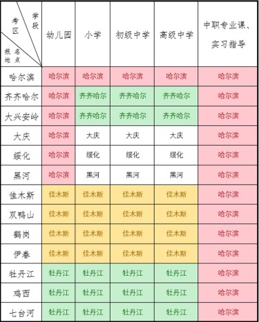 4.考區(qū)選擇:面試共設(shè)哈爾濱、齊齊哈爾、牡丹江、佳木斯、大慶、綏化、黑河七個(gè)考區(qū),考生網(wǎng)上報(bào)名時(shí)須根據(jù)戶籍(或居住證)所在地,在校生按學(xué)籍關(guān)系所在地按《面試填報(bào)考區(qū)對(duì)照表》選擇對(duì)應(yīng)考區(qū),不得跨區(qū)報(bào)考,農(nóng)、林系統(tǒng)考生可就近選擇考區(qū)報(bào)考。