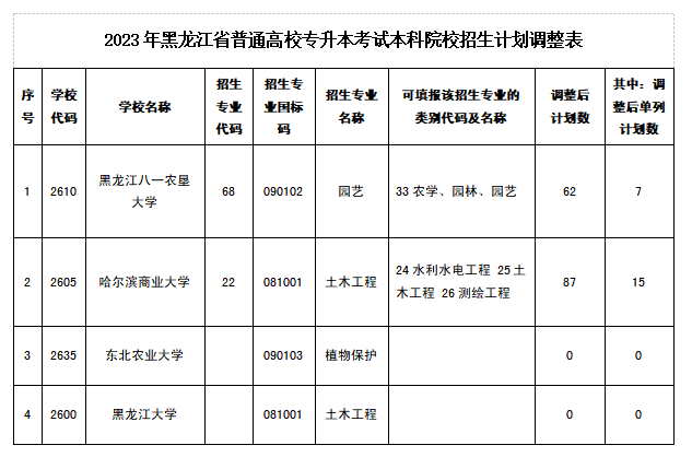 關(guān)于2023年黑龍江省普通高校專(zhuān)升本考試本科院校招生計(jì)劃調(diào)整的通知